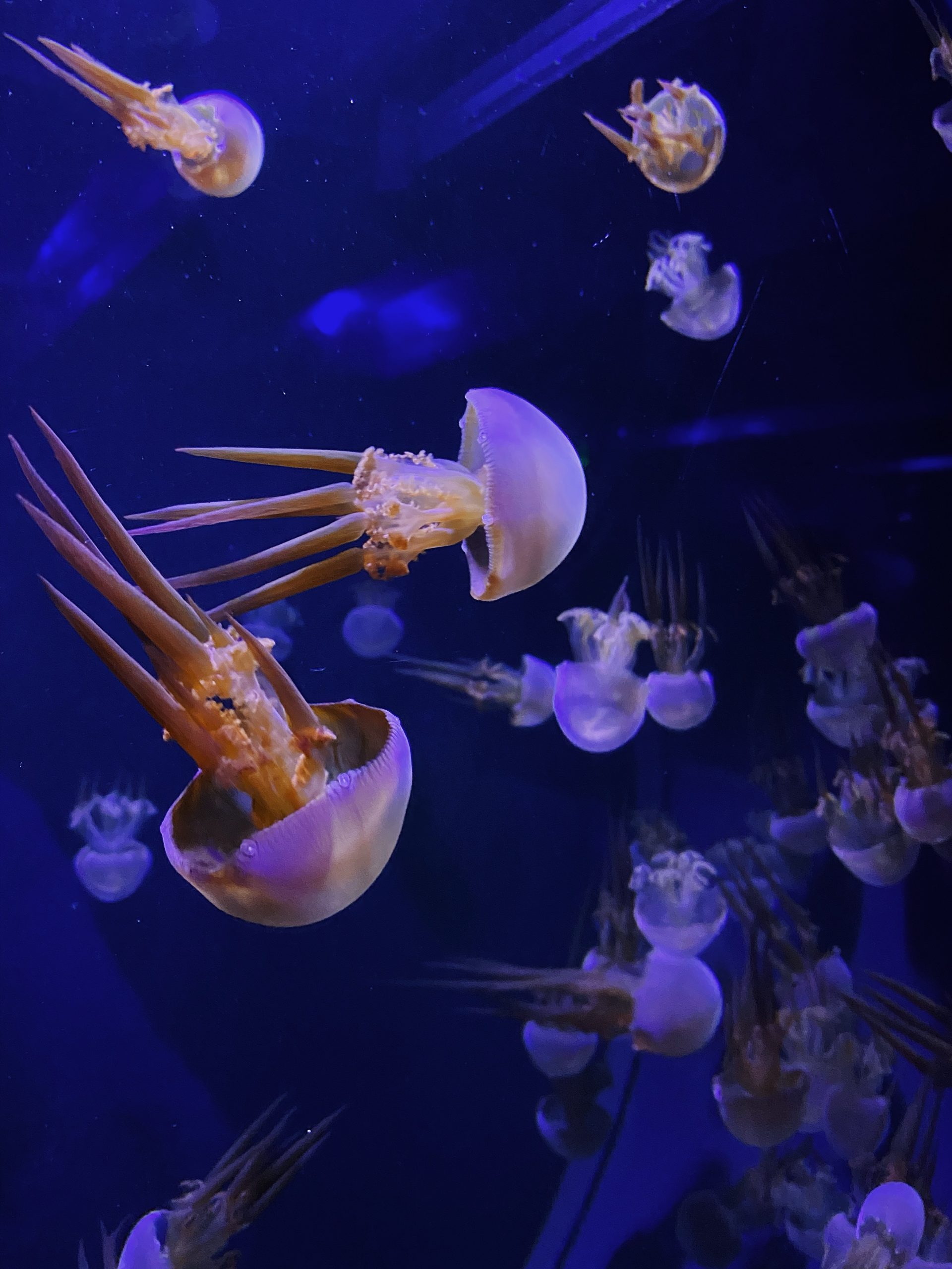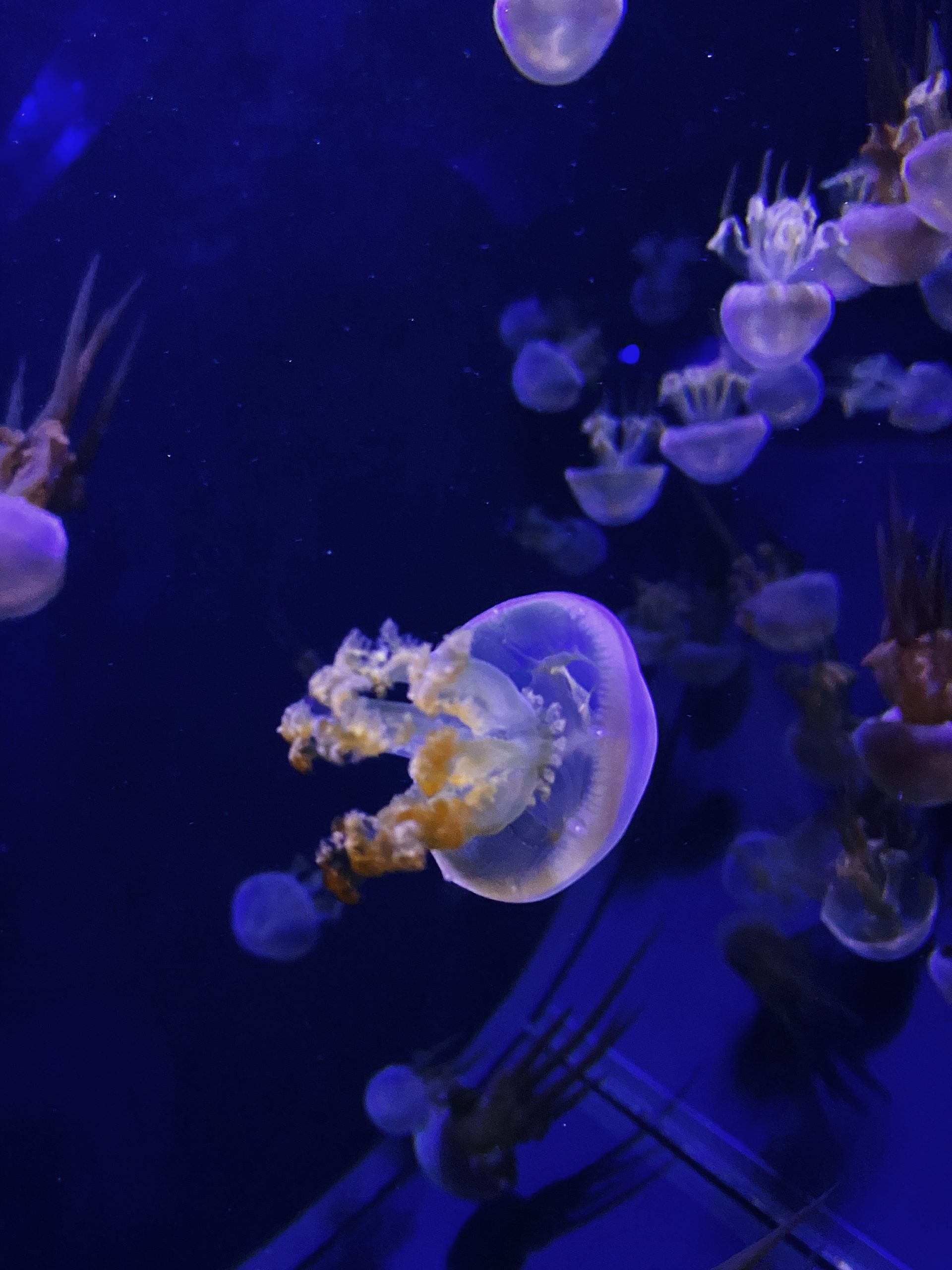 Крім традиційних овальних акваріумів у стінах, є ще вертикальні (вони мають вигляд колон, що дозволяє відвідувачам роздивлятися морських мешканців з 360°) та горизинотальні (як звичайний домашній акваріум, тільки в рази більше). Крім акваріумів з самими медузами, є ще стенд з мікроскопом, під яким можна роздивитися живий корм, який вони споживають.